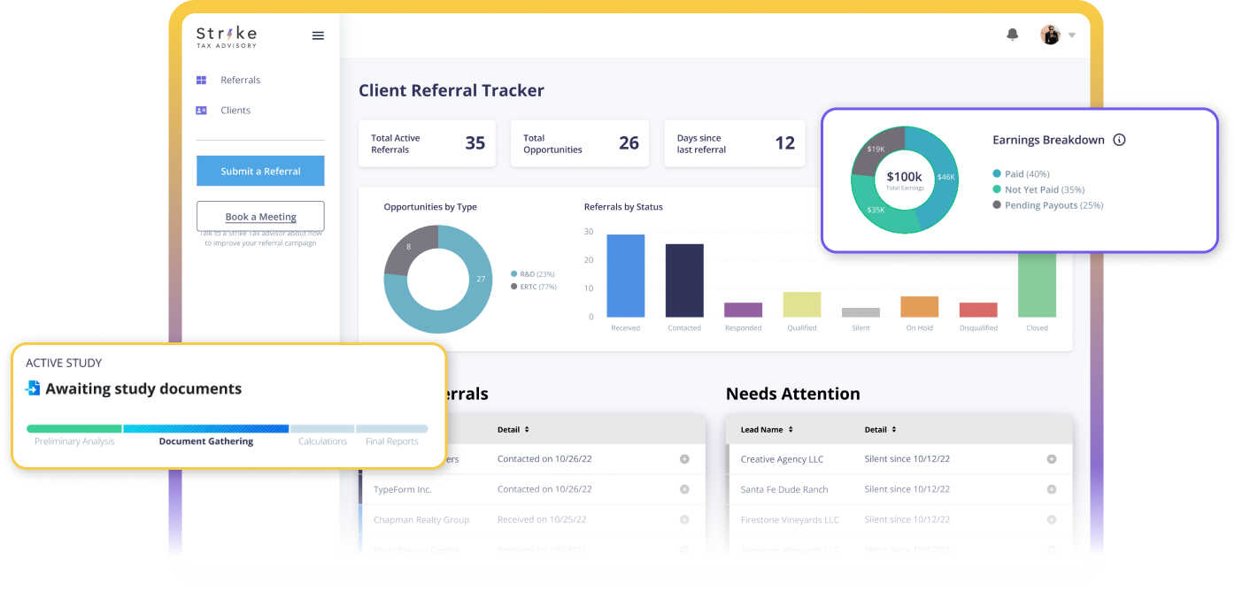 Refer your clients to Strike's R&D tax credit and OBBBA recovery program. You earn a referral fee on every successful engagement. No cost, no liability, no extra work for your team.