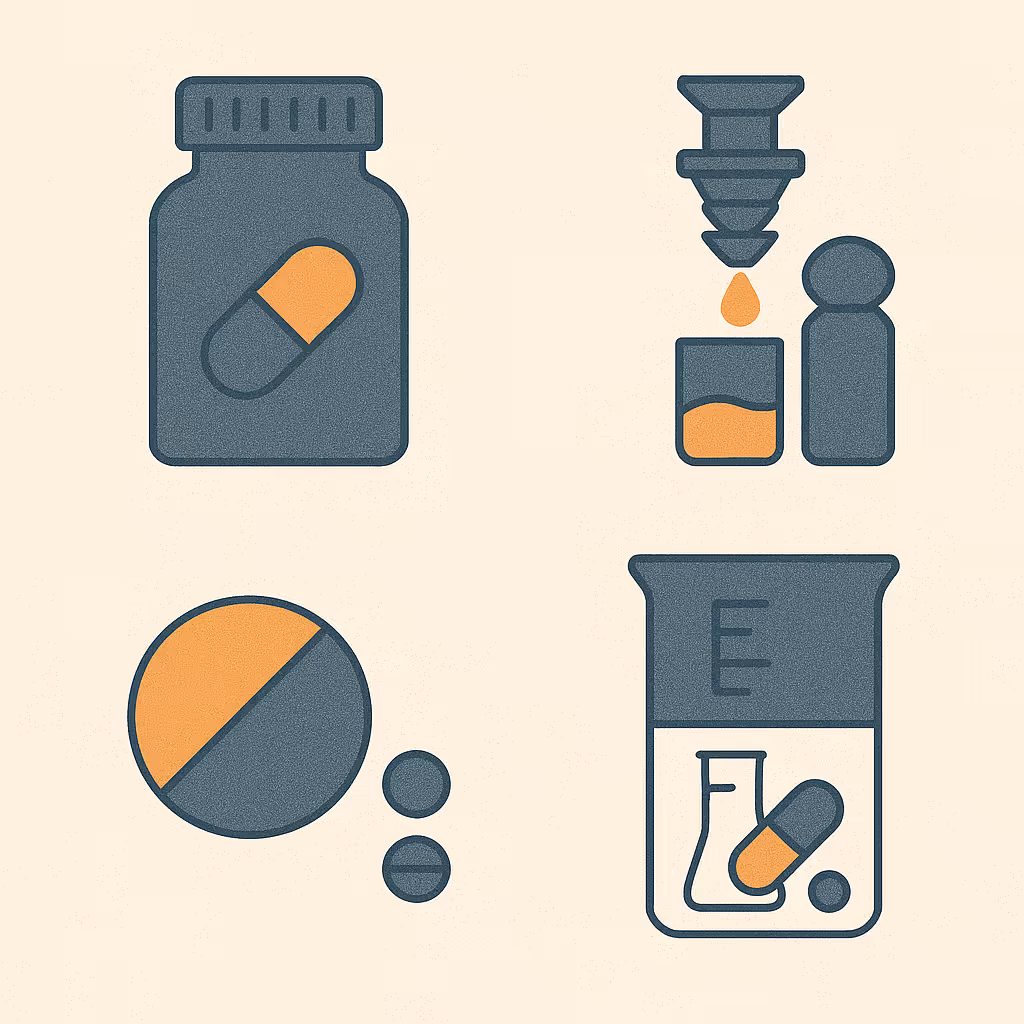 - Formulation optimisation Adjusting excipient blends, tablet coatings, dissolution profiles, or delivery formats to match reference drug.