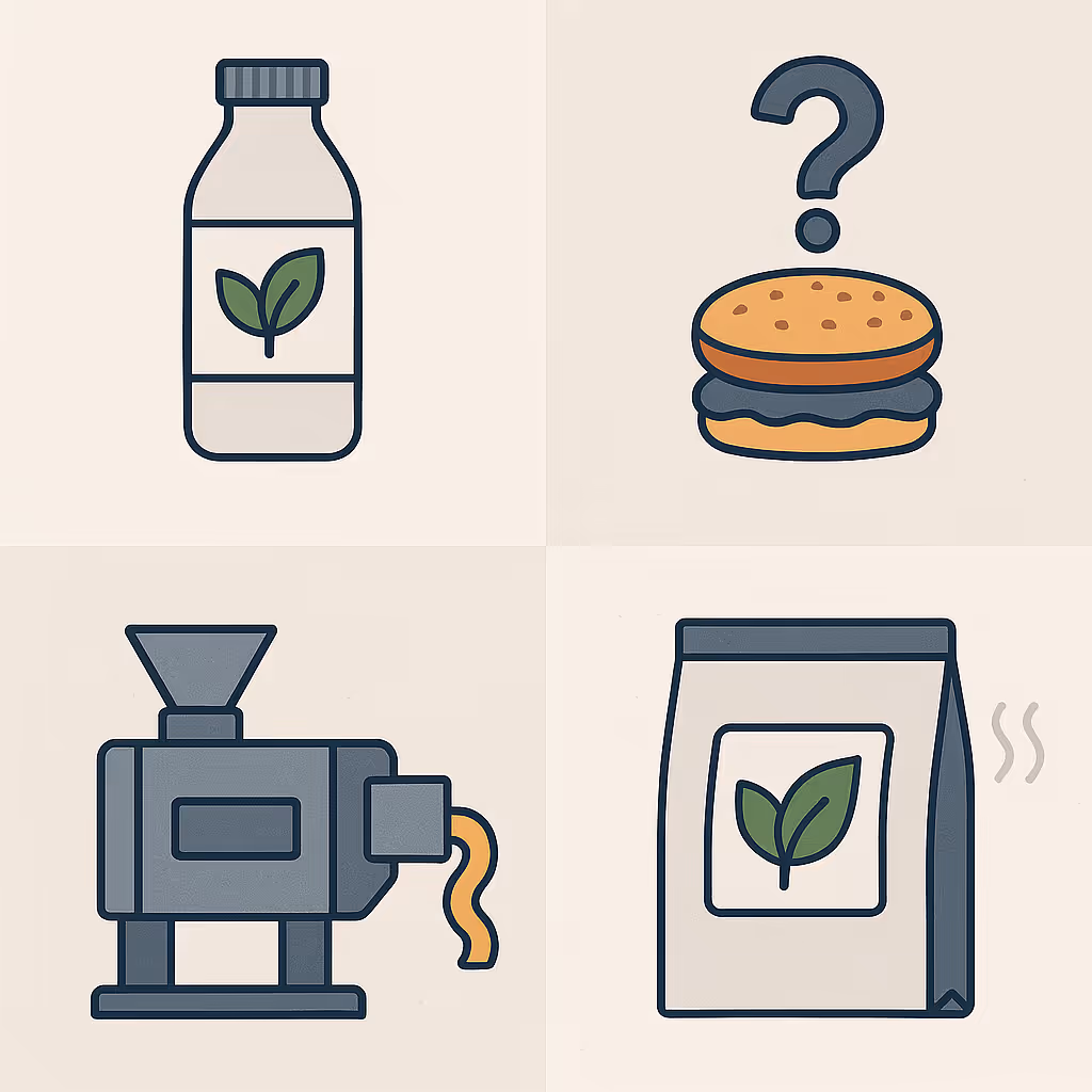 - Use a process of experimentation — formulation trials of plant proteins, pilot extrusion/fermentation runs, packaging material trials for plant‑based formats, shelf‑life and stability testing, process redesign for plant raw‑material handling.