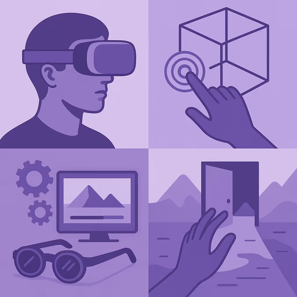 - Use a process of experimentation — prototype hardware, iterate rendering algorithms, test latency/comfort/tracking performance, field/test immersive UX scenarios, refine input/output systems, iterate sensors/haptics.